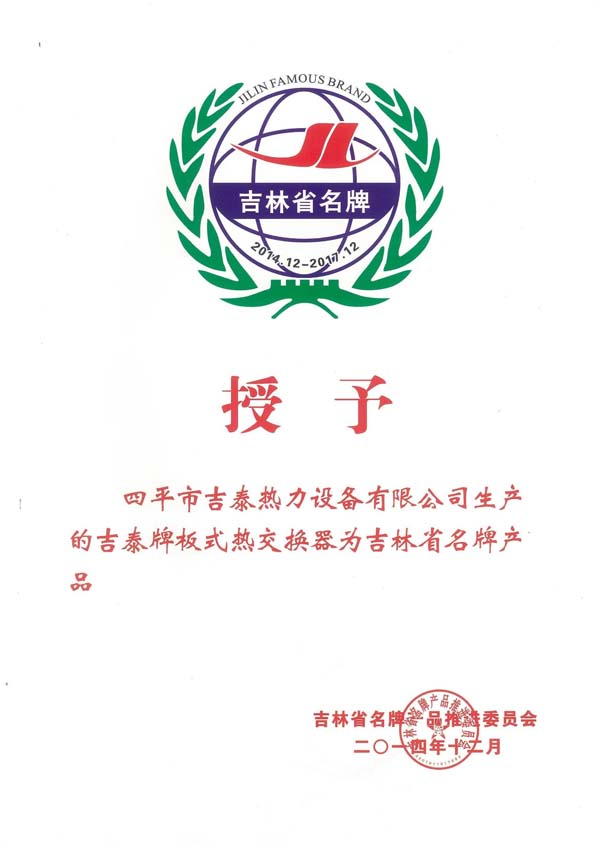 板式換熱器吉林省名牌產(chǎn)品